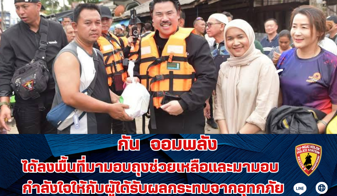 นายสันติ บินนะโกะ ประธานกต.ตร.สภ.สุไหงโกลก และประชาชน ร่วมให้การต้อนรับ คุณกันจอมพลัง ที่ได้ลงพื้นที่มามอบถุงช่วยเหลือและมามอบกำลังใจให้กับผู้ได้รับผลกระทบจากอุทกภัยในครั้งนี้ และรับฟังปัญหาจากชาวบ้านในพื้นที่ ณ ชุมชนท่าโปฮงยามูและท่าเจ๊ะกาเซ็ง อำเภอสุไหงโก-ลก จังหวัดนราธิวาส