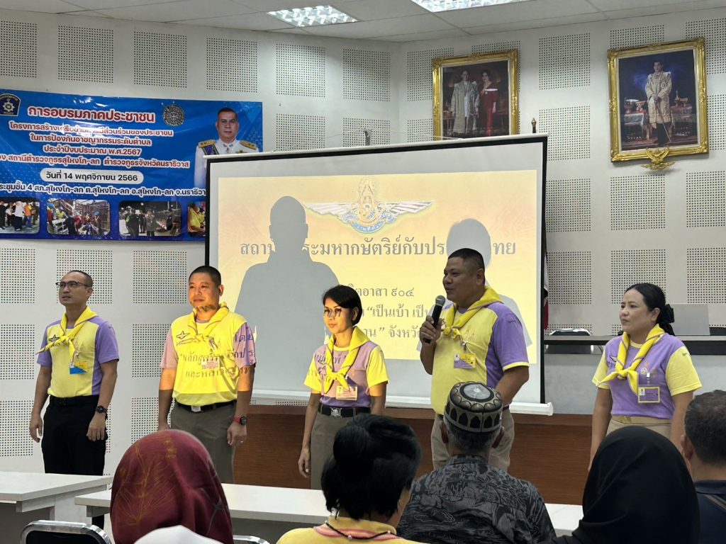 กิจกรรมอบรมเครือข่ายการมีส่วนร่วมประชาชนเพื่อป้องกันอาชญากรรมระดับตำบล 14 พฤศจิกายน 2566 โดย admin / ข่าวประชาสัมพันธ์ สภ.สุไหงโก-ลกวันนี้ 14 พ.ย.66 เวลา 08:30 น.พ.ต.ท.นิติ สุขสันต์ รอง ผกก.ป.สภ.สุไหงโก-ลก พร้อมด้วย ชุด ตชส.สภ.สุไหงโก-ลก,คณะ จิตอาสา 904 ร่วมกิจกรรมอบรมเครือข่ายการมีส่วนร่วมประชาชนเพื่อป้องกันอาชญากรรมระดับตำบล ณ ห้องประชุม ชั้น 4 สภ.สุไหงโก-ลก จำนวนคนดู 3 FacebookFacebookXXLINELine