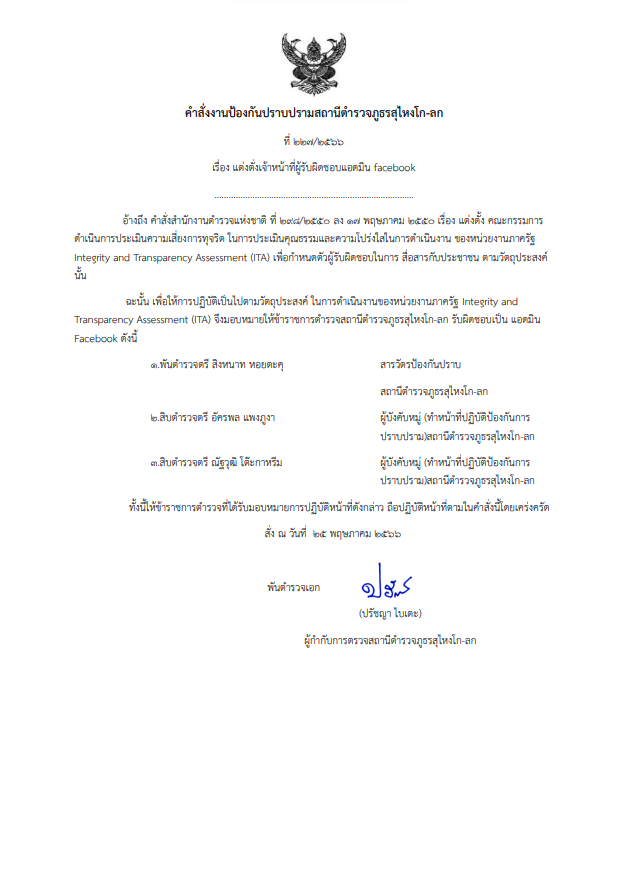 คำสั่งมอบหมาย การปฎิบัติหน้าที่ตอบ Q&A
