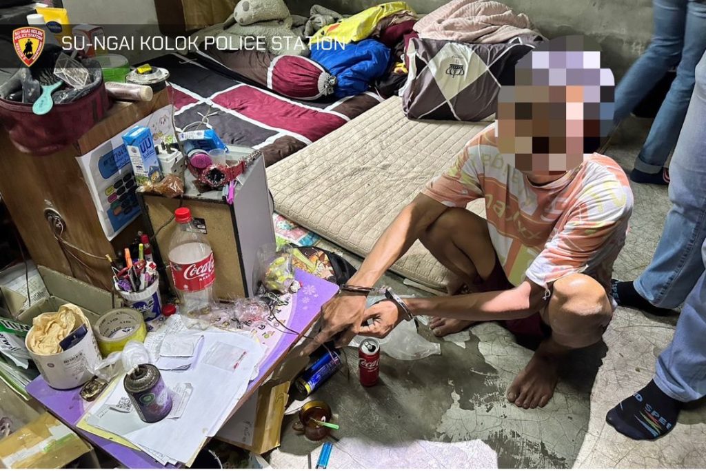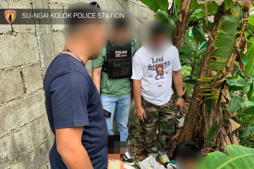 ร่วมจับกุมตัว นายกรอบไม่หยุด ฟันหลุดไม่รู้ตัว (นามสมมุติ) อายุ 37 ปี ที่อยู่ ต.สุไหงโก-ลก อ.สุไหงโก-ลก จว.นราธิวาส