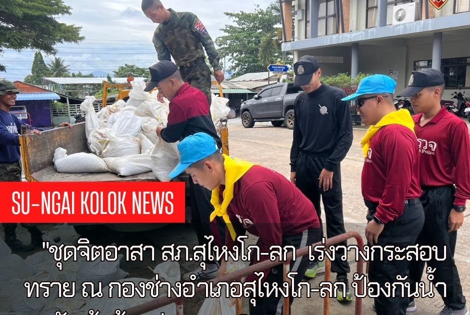 “ชุดจิตอาสา สภ.สุไหงโก-ลก เร่งวางกระสอบทราย ณ กองช่างอำเภอสุไหงโก-ลก ป้องกันน้ำทะลักเข้าบ้านประชาชน” 23 พฤศจิกายน 2566 โดย admin / ข่าวประชาสัมพันธ์,ข่าวกิจกรรม,ข่าวประชาสัมพันธ์ “ชุดจิตอาสา สภ.สุไหงโก-ลก เร่งวางกระสอบทราย ณ กองช่างอำเภอสุไหงโก-ลก ป้องกันน้ำทะลักเข้าบ้านประชาชน” พ.ต.ต.พรเทพ คงเทพ สว.อก.สภ.สุไหงโก-ลก ,ร.ต.ต.ณรงค์ชัย บือซา รอง สว.(สส.)สภ.สุไหงโก-ลก พร้อม ชุดจิตอาสา สภ.สุไหงโก-ลก ออก ว.4 ทำคันกระสอบทรายเพื่อแก้ปัญหาน้ำท่วม ในพื้นที่อำเภอสุไหงโก-ลก ณ กองช่างอำเภอสุไหงโก-ลก ข้าราชการตำรวจจิตอาสา 9 นาย,หน่วยราชการ 41 นาย ช่วยกัน วางกระสอบทราย ณ กองช่างอำเภอสุไหงโก-ลก จำนวนคนดู 10 FacebookFacebookXXLINELine