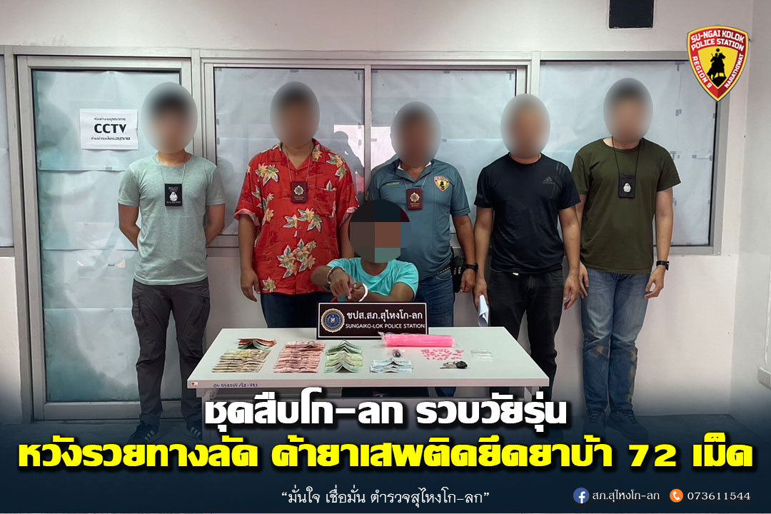 “ชุดสืบโก-ลก รวบวัยรุ่นหวังรวยทางลัด ค้ายาเสพติดยึดยาบ้า 72 เม็ด”