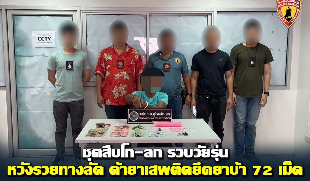 “ชุดสืบโก-ลก รวบวัยรุ่นหวังรวยทางลัด ค้ายาเสพติดยึดยาบ้า 72 เม็ด”