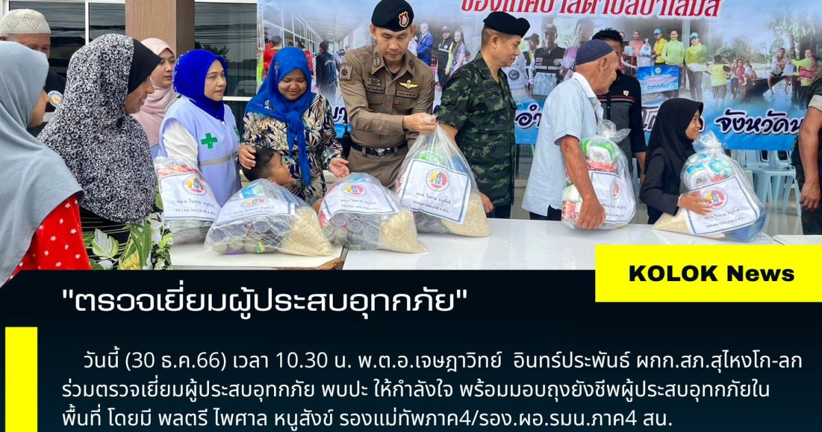 วันนี้ (30 ธ.ค.66) เวลา 10.30 น. พ.ต.อ.เจษฎาวิทย์ อินทร์ประพันธ์ ผกก.สภ.สุไหงโก-ลก ร่วมตรวจเยี่ยมผู้ประสบอุทกภัย พบปะ ให้กำลังใจ พร้อมมอบถุงยังชีพผู้ประสบอุทกภัยในพื้นที่ โดยมี พลตรี ไพศาล หนูสังข์ รองแม่ทัพภาค4/รอง.ผอ.รมน.ภาค4 สน.
