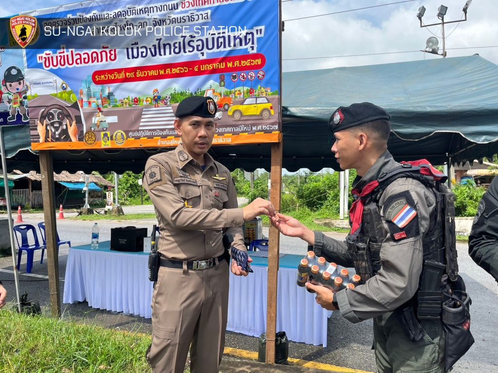 ตรวจเยี่ยมสร้างขวัญกำลังใจ เจ้าหน้าที่ประจำจุดตรวจด่านน้ำตกห้วงเทศกาลปีใหม่ ประจำปี 2567 ตามแผนการป้องกันและลดอุบัติเหตุทางถนนช่วงเทศกาลปีใหม่ พ.ศ.2567 กำชับการบริการและการอำนวยความสะดวกแก่ประชาชน พร้อมมอบเครื่องดื่มบำรุงขวัญ และพระเครื่องหลวงปู่ทวดให้แก่เจ้าหน้าที่ ณ จุดตรวจด่านน้ำตก