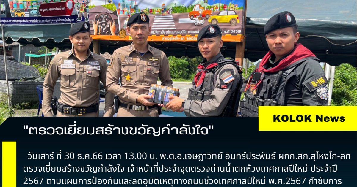 ตรวจเยี่ยมสร้างขวัญกำลังใจ เจ้าหน้าที่ประจำจุดตรวจด่านน้ำตกห้วงเทศกาลปีใหม่ ประจำปี 2567 ตามแผนการป้องกันและลดอุบัติเหตุทางถนนช่วงเทศกาลปีใหม่ พ.ศ.2567 กำชับการบริการและการอำนวยความสะดวกแก่ประชาชน พร้อมมอบเครื่องดื่มบำรุงขวัญ และพระเครื่องหลวงปู่ทวดให้แก่เจ้าหน้าที่ ณ จุดตรวจด่านน้ำตก