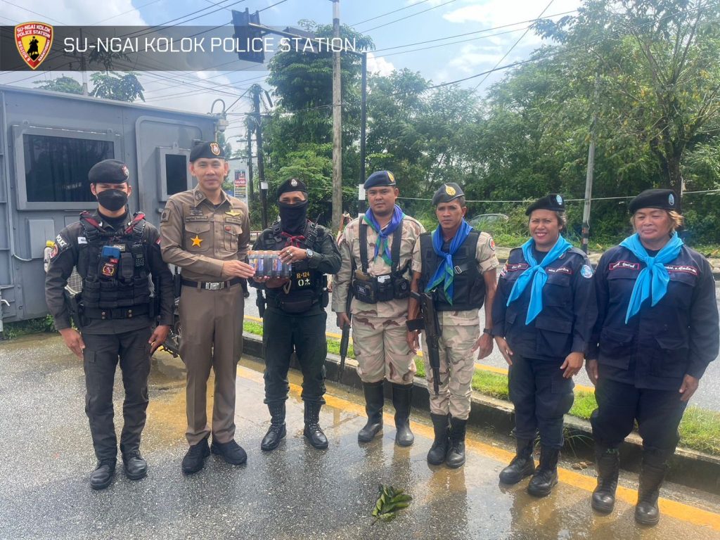 และพระเเครื่องหลวงปูทวดให้แก่เจ้าหน้าที่ ณ จุดตรวจบือเร็ง อ.สุไหงโก-ลก จว.นราธิวาส