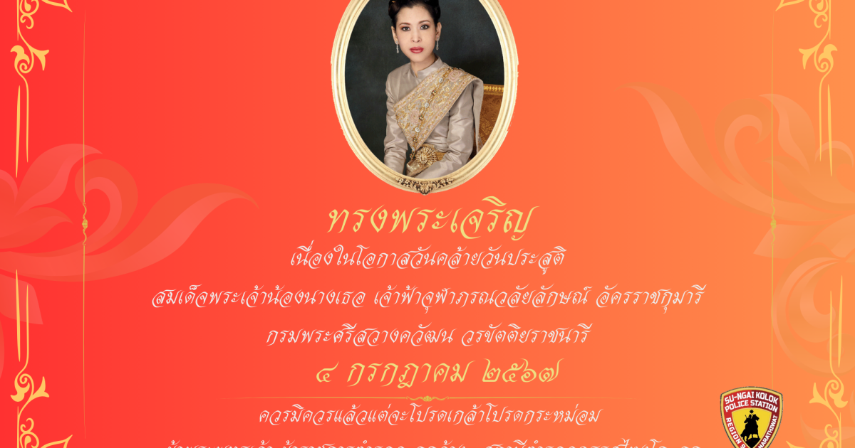 ทรงพระเจริญด้วยเกล้าด้วยกระหม่อมขอเดชะข้าพระพุทธเจ้าข้าราชการตำรวจ ลูกจ้าง ครอบครัวข้าราชการตํารวจ สถานีตำรวจภูธรสุไหงโก-ลก จังหวัดนราธิวาส 4 กรกฎาคม 2567 โดย admin / ไม่มีหมวดหมู่ จำนวนคนดู 11 FacebookFacebookXXLINELine