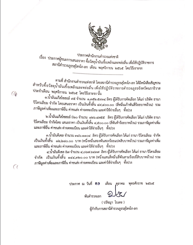 รายการจัดซื้อจัดจ้างเดือน พฤศจิกายน พ.ศ. 2565