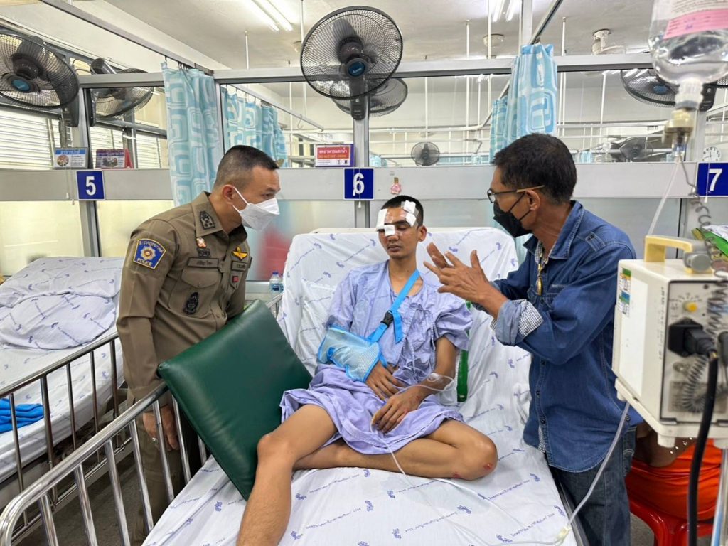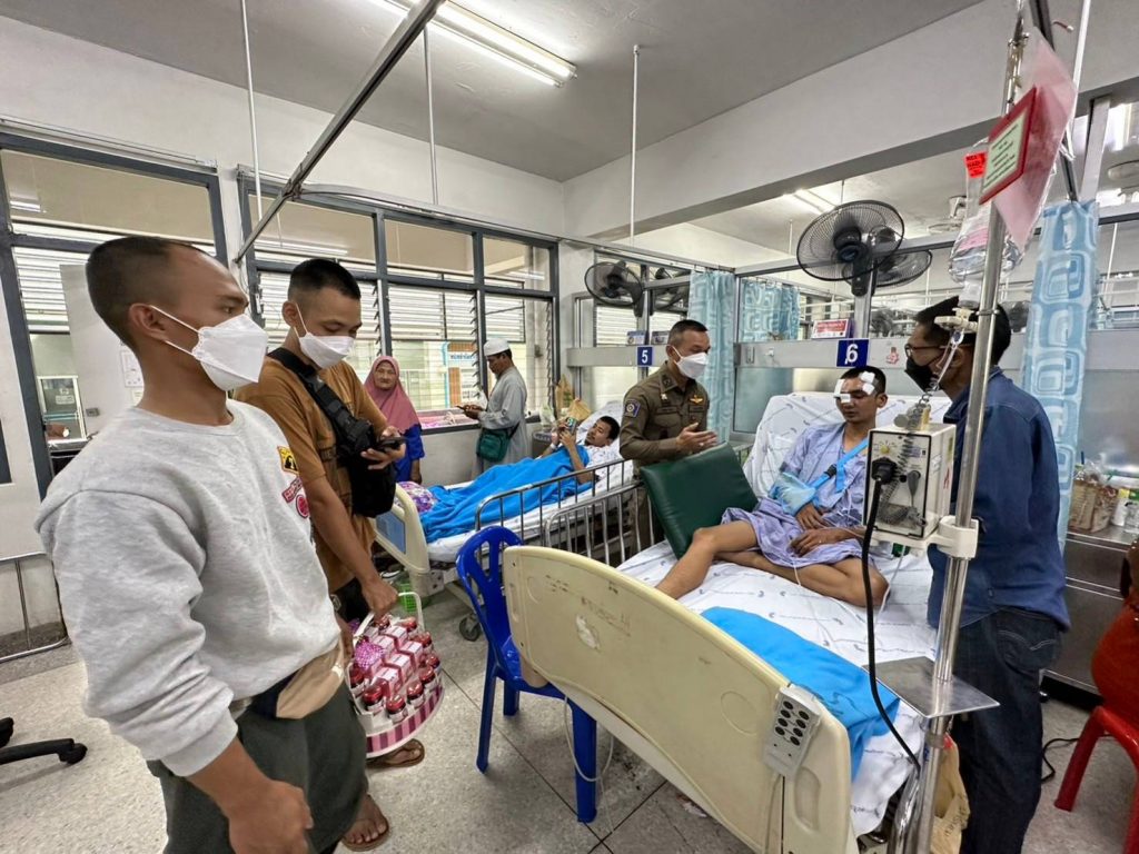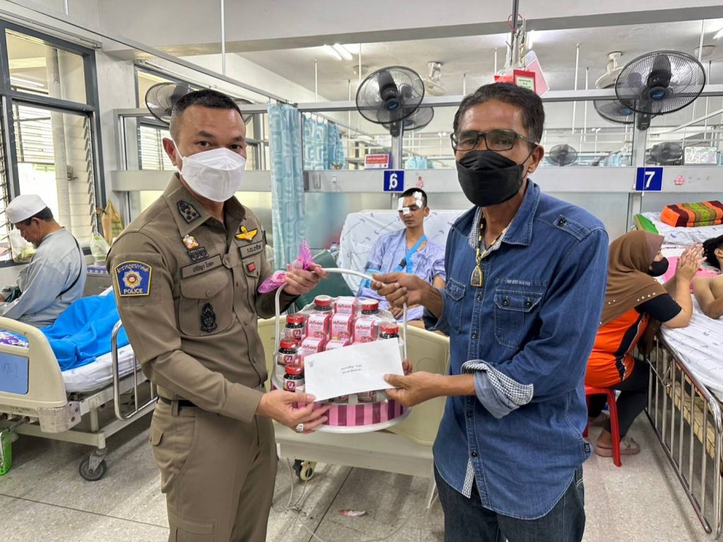 เยี่ยม ส.ต.ต.จักรกฤษณ์ เยี่ยมยกกุล ผบ.หมู่(นปพ.) สภ.สุไหงโก-ลก ซึ่งได้รับอุบัติเหตุล้มรถจักรยายนต์ ขณะติดตามกลุ่มวัยรุ่นหลบหนีด่านตรวจ