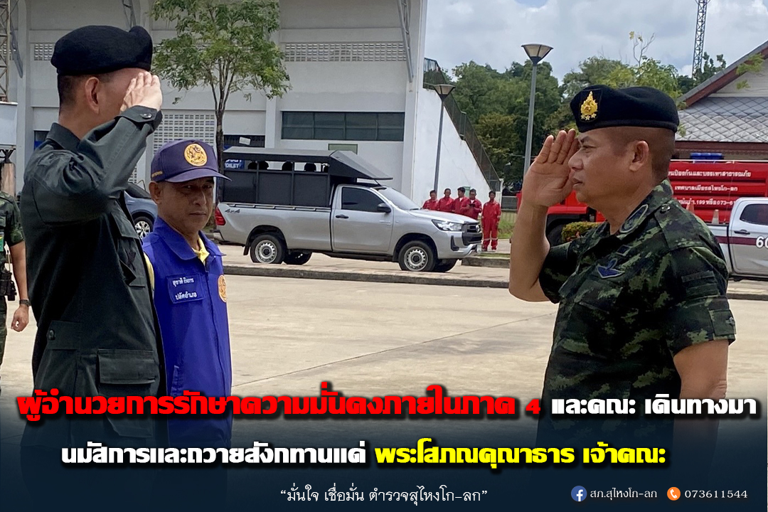 พ.ต.อ.เจษฏาวิทย์ อินทร์ประพันธ์ ผกก.สภ.สุไหงโก-ลกพร้อมเจ้าหน้าที่ 3 ฝ่ายร่วมให้การต้อนรับ-ส่งพล.ท.ไพศาล หนูสังข์ แม่ทัพภาคที่ 4 /ผู้อำนวยการรักษาความมั่นคงภายในภาค 4 และคณะ ในโอกาสเดินทางมานมัสการเเละถวายสังกทานเเด่ พระโสภณคุณาธาร เจ้าคณะจังหวัดนราธิวาส เจ้าอาวาสวัดทองดีประชารามณ วัดทองดีประชาราม (ท่านแดง) อ.สุไหงโก-ลก จ.นราธิวาส