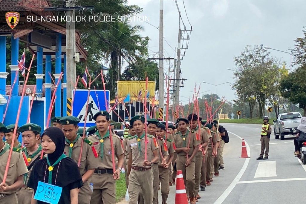 ตำรวจจราจรสุไหงโก-ลก อำนวยความสะดวกการจราจร ทางร่วมทางแยก ตามเส้นทางเดินทางไกล ให้กับโครงการเข้าค่ายพักแรมและพิธีเข้าประจำกองลูกเสือวิสามัญ ประจำปีการศึกษา 2566 ณ ค่ายลูกเสือชั่วคราววิทยาลัยการอาชีพสุไหงโก-ลก