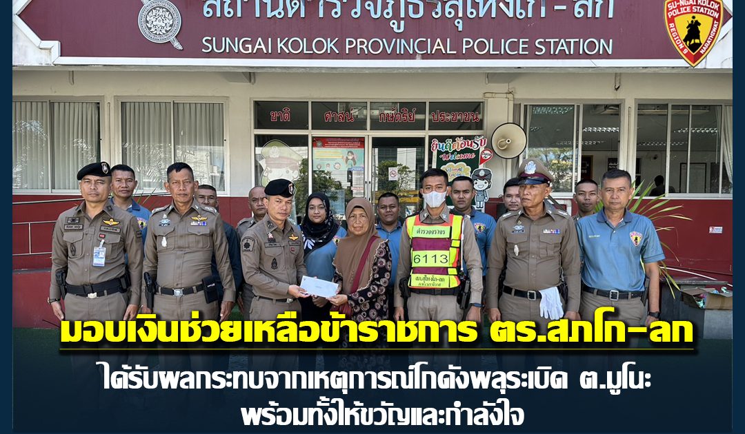 วันที่ 11 ส.ค. 66 เวลา 12.00 น. พ.ต.อ.ปรัชญา ไบเตะ ผกก.สภ.สุไหงโก-ลก และข้าราชการตำรวจ มอบเงินช่วยเหลือข้าราชการ ตร.สภ.โก-ลก ได้รับผลกระทบจากเหตุการณ์โกดังพลุระเบิด ต.มูโนะ พร้อมทั้งให้ขวัญและกำลังใจ
