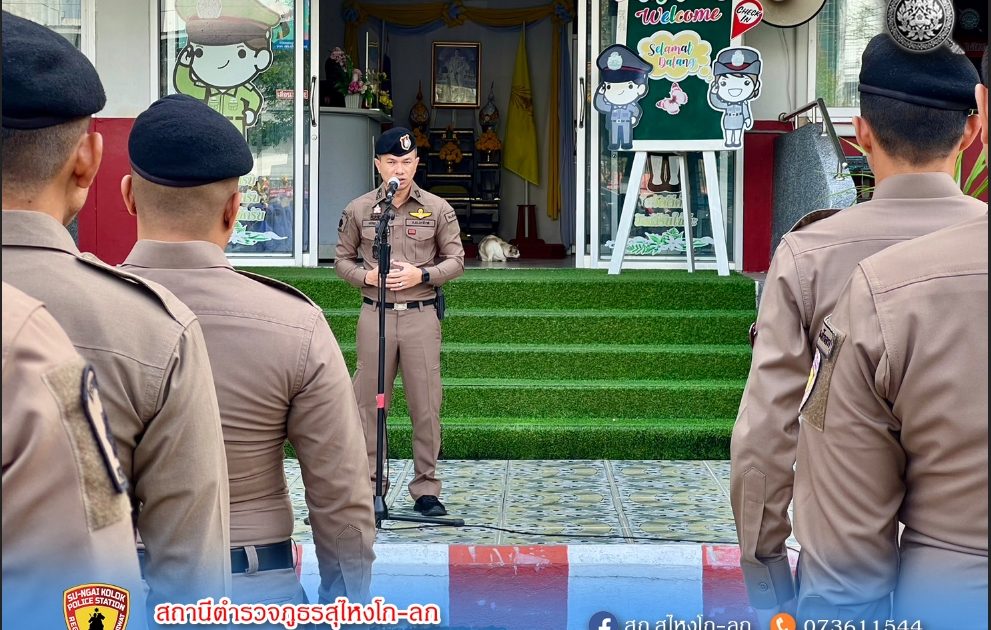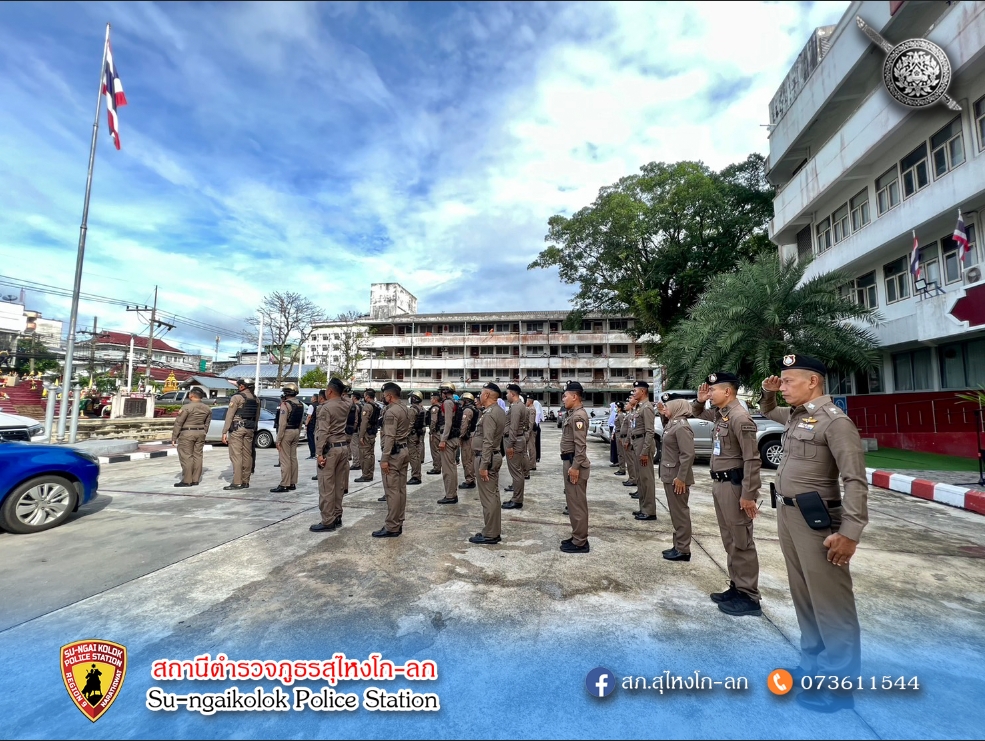 รวมแถวเคารพธงชาติ 13 ธันวาคม 2566 โดย admin / ข่าวประชาสัมพันธ์,ข่าวกิจกรรม,ข่าวภารกิจผู้บังคับบัญชา วันที่ 27 พ.ย. 66 เวลา 08.30 น.ข้าราชการตำรวจสุไหงโก-ลก ร่วมเข้าแถวเคารพธงชาติ-ชป.วิหคผลัดใหม่-ประจำจุดเซฟตี้โซน-ชป.สืบสวน-ชป.อำนวยการ-เดินเท้าหน้า รพ-นักศึกษาฝึกงาน-อส.ตร.-ตรวจความพร้อมกำลังพล อุปกรณ์ส่วนควบต่างๆในการปฎิบัติหน้าที่ชี้แจงภารกิจปล่อยแถวออก ว.4 จำนวนคนดู 10 FacebookFacebookXXLINELine
