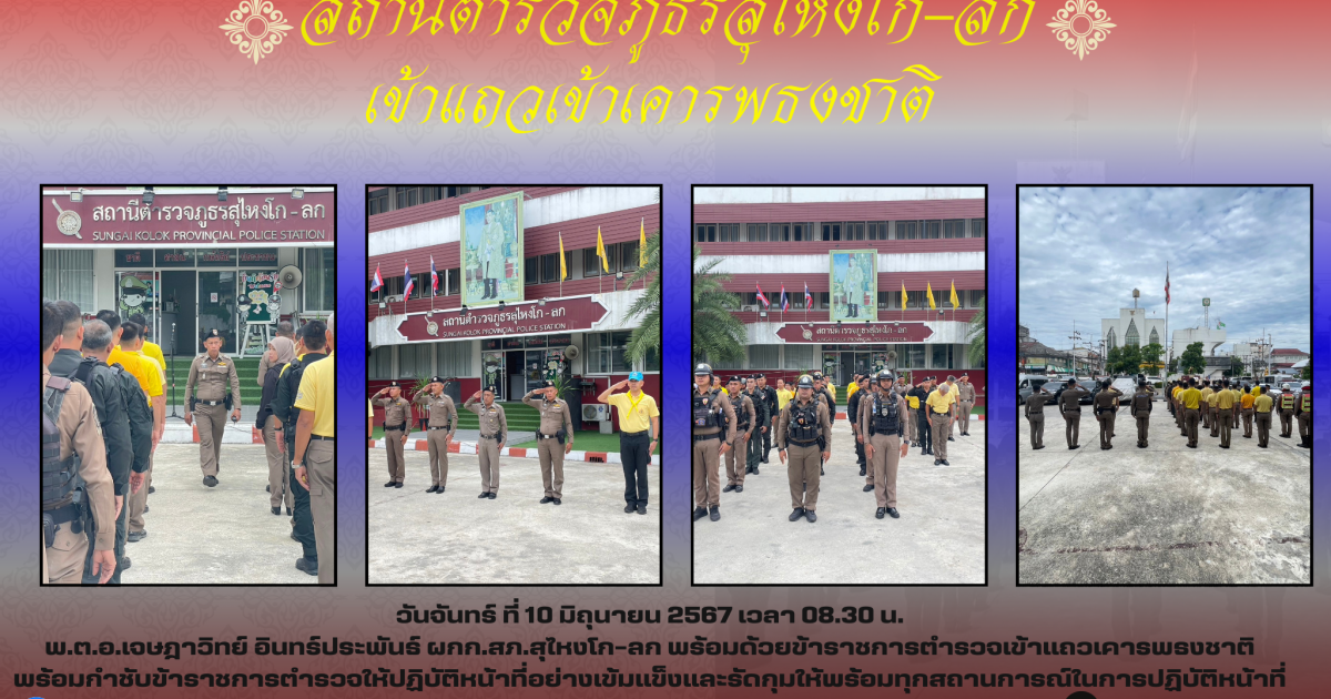 ◾เข้าแถวเคารพธงชาติวันจันทร์ ที่ 10 มิถุนายน 2567 เวลา 08.30 น. 10 มิถุนายน 2567 โดย admin / ข่าวประชาสัมพันธ์,ข่าวกิจกรรม,ข่าวประชาสัมพันธ์,ข่าวประชาสัมพันธ์,ข่าวฝากประชาสัมพันธ์,ข่าวภารกิจผู้บังคับบัญชา,หัวหน้าสถานีมีส่วนร่วม 2567 จำนวนคนดู 16 FacebookFacebookXXLINELine