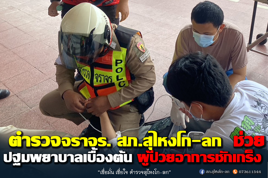 ข่ายจราจรช่วยปฐมพยาบาลเบื้องต้น ผู้ป่วยอาการชักเกร็ง โดยให้นอนตะแคงซ้าย เพื่อป้องกันทางเดินหายใจส่วนบนอุดกั้น และป้องกันการสำลักอาหารลงปอด ระว่างรอรถฉุกเฉินมารับนำส่งรพ.