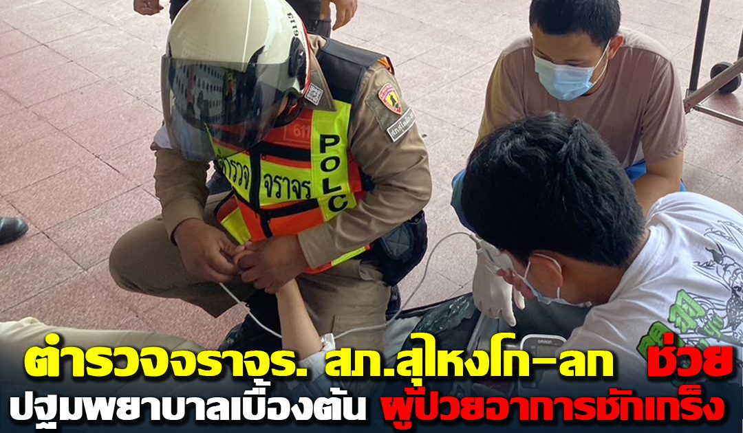 ข่ายจราจรช่วยปฐมพยาบาลเบื้องต้น ผู้ป่วยอาการชักเกร็ง โดยให้นอนตะแคงซ้าย เพื่อป้องกันทางเดินหายใจส่วนบนอุดกั้น และป้องกันการสำลักอาหารลงปอด ระว่างรอรถฉุกเฉินมารับนำส่งรพ.