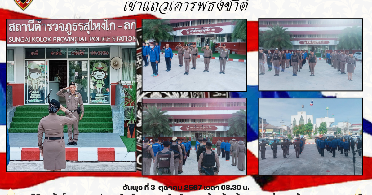 พ.ต.ท.นิติ สุขสันต์รอง ผกก.ป.สภ.สุไหงโก-ลกสภ.สุไหงโก-ลกพร้อมด้วยข้าราชการตำรวจเข้าแถวเคารพธงชาติ