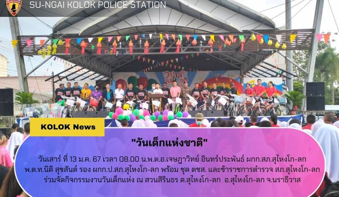 พ.ต.ท.นิติ สุขสันต์ รอง ผกก.ป.สภ.สุไหงโก-ลก พร้อม ชุด ตชส. และข้าราชการตำรวจ สภ.สุไหงโก-ลก ว.4 ร่วมจัดกิจกรรมงานวันเด็กแห่ง ณ สวนสิรินธร ต.สุไหงโก-ลก อ.สุไหงโก-ลก จ.นราธิวาส