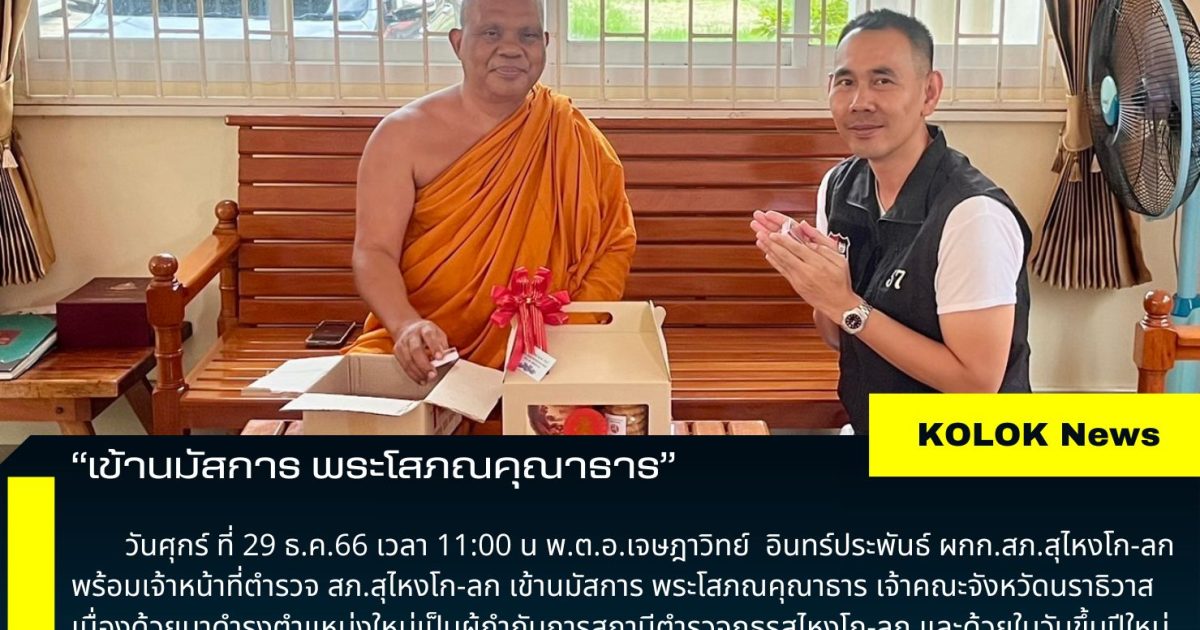 พร้อมเจ้าหน้าที่ตำรวจ สภ.สุไหงโก-ลก เข้านมัสการ พระโสภณคุณาธาร เจ้าคณะจังหวัดนราธิวาส เนื่องด้วยมาดำรงตำแหน่งใหม่เป็นผู้กำกับการสถานีตำรวจภูธรสุไหงโก-ลก และด้วยในวันขึ้นปีใหม่ ปี 2567 ขอพรพร้อมขอคำชี้แนะแนวทางในการทำงานให้เกิดประโยชน์สูงสุดแก่ประชาชนในพื้นที่ ณ วัดทองดีประชาราม(ท่านแดง) อ.สุไหงโก-ลก จ.นราธิวาส