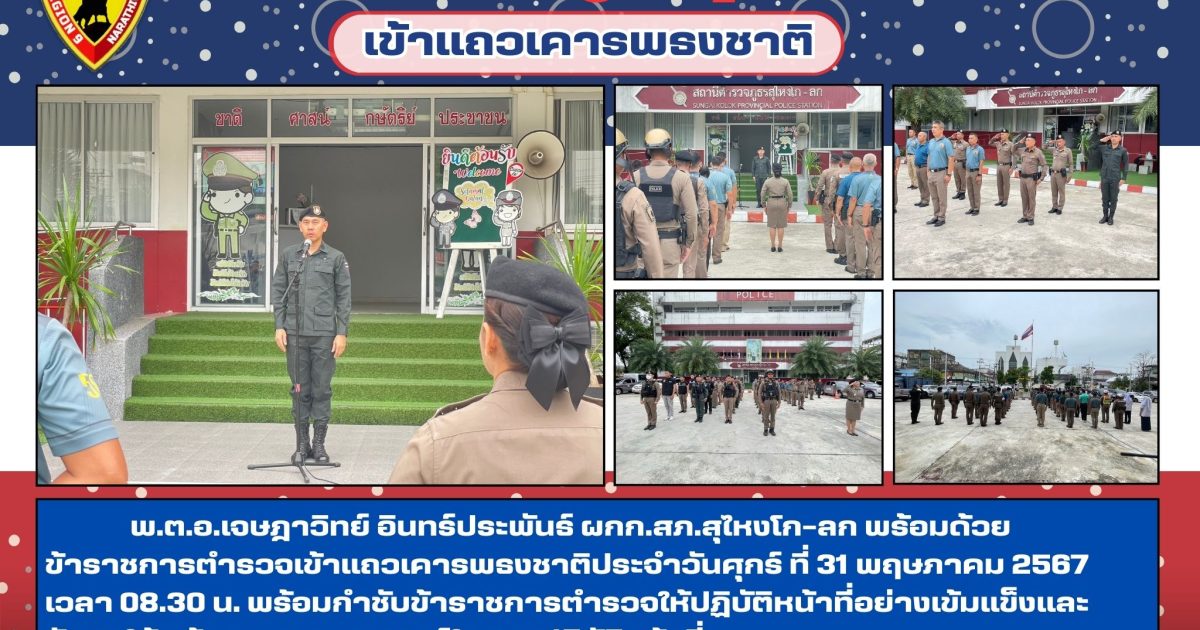 เข้าแถวเคารพธงชาติ 31 พฤษภาคม 2567 โดย admin / ข่าวประชาสัมพันธ์,ข่าวประชาสัมพันธ์,ข่าวฝากประชาสัมพันธ์,ข่าวภารกิจผู้บังคับบัญชา,หัวหน้าสถานีมีส่วนร่วม 2567 จำนวนคนดู 14 FacebookFacebookXXLINELine