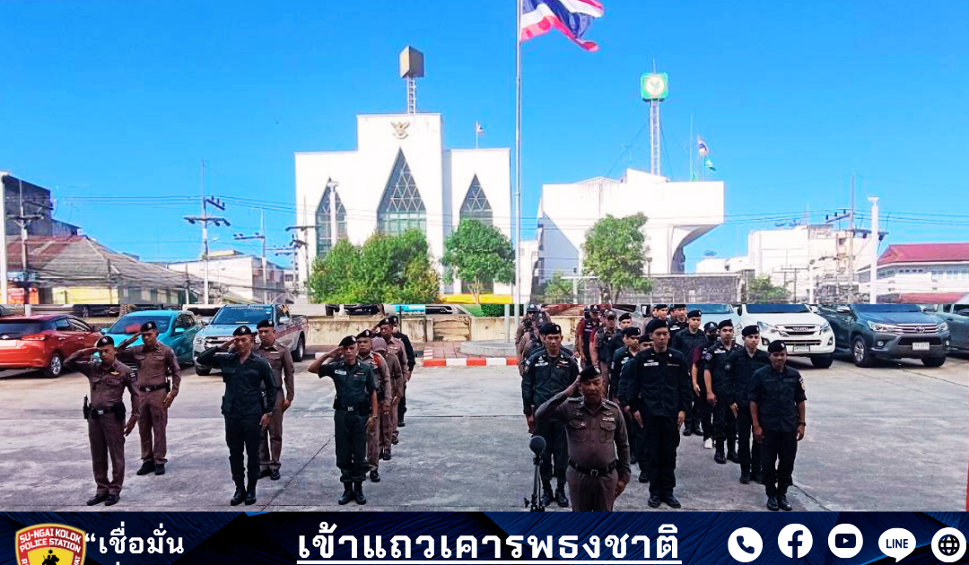 พร้อมด้วยข้าราชการตำรวจเข้าแถวเคารพธงชาติ พร้อกำชับข้าราชการตำรวจให้ปฏิบัติหน้าที่อย่างเข้มแข็งและรัดกุมให้พร้อมทุกสถานการณ์ในกาปฏิบัติหน้าที่
