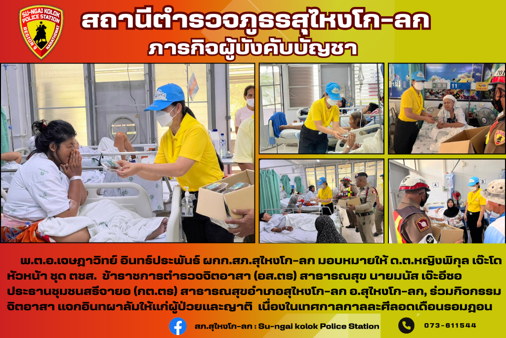 เจ้าหน้าที่แจกอินทผาลัมให้แก่ผู้ป่วยและญาติ เนื่องในเทศกาลกาลละศีลอดเดือนรอมฎอน 20 มีนาคม 2567 โดย admin / ข่าวประชาสัมพันธ์,ข่าวประชาสัมพันธ์,ข่าวฝากประชาสัมพันธ์,ข่าวภารกิจผู้บังคับบัญชา,โครงการ จำนวนคนดู 10 FacebookFacebookXXLINELine