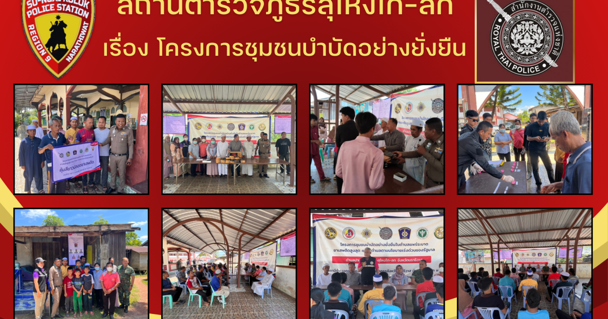 พร้อม งานชุมชนสัมพันธ์ สภ.สุไหงโก-ลก ดำเนินงานติดตามภารกิจขับเคลื่อน พร้อมกับ นายปฏิวัติ เด่นอร่าคาน นายกปฏิวัติ(นายกเทศมนตรีตำบลปาเสมัส)นายมะรอดี บินสะมะเเอ (ผู้ใหญ่บ้าน หมู่5) ประธานอิหม่าม ดำเนินโครงการชุมชนบำบัดอย่างยั่งยืนในตำบลแพร่ระบาดยาเสพติดสูงสุด 100 ตำบล ตามนโยบายเร่งด่วน และได้นำผู้บำบัดมาเข้าร่วมเพื่อคัดครองโครงการ CBT โดยใช้วิธีการดาวะห์(ศาสนบำบัด) มอบเครื่องอุปโภคบริโภค เพื่อเป็นขวัญกำลังใจ ให้แก่ผู้เข้าร่วมโครงการ บำบัด โดยใช้วิธีการดาวะห์