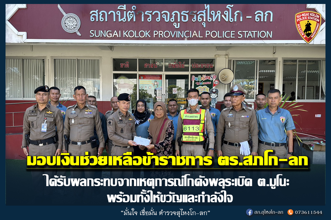 วันที่ 11 ส.ค. 66 เวลา 12.00 น. พ.ต.อ.ปรัชญา ไบเตะ ผกก.สภ.สุไหงโก-ลก และข้าราชการตำรวจ มอบเงินช่วยเห