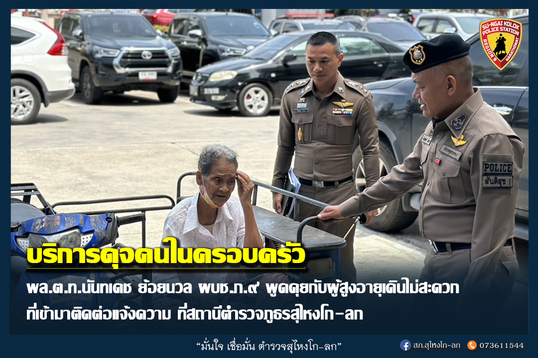 เมื่อวันที่ 7 สิงหาคม 2566 เวลาประมาณ 12.00 น. พล.ต.ท.นันทเดช ย้อยนวล ผบช.ภ.๙ พบผู้สูงอายุที่นั่งอยู