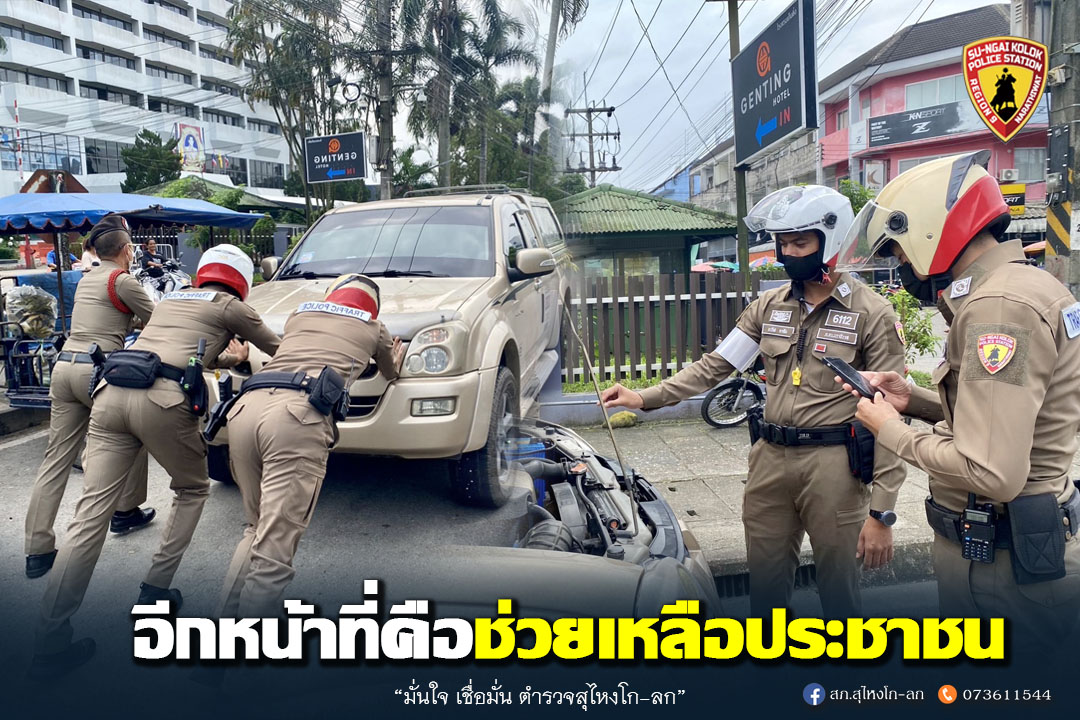 อีกหน้าที่คือช่วยเหลือประชาชนตำรวจสุไหงโก-ลก งานจราจร ช่วยเหลือประชาชน เหตุรถยนต์สตาร์ทไม่ติด บริเวณ