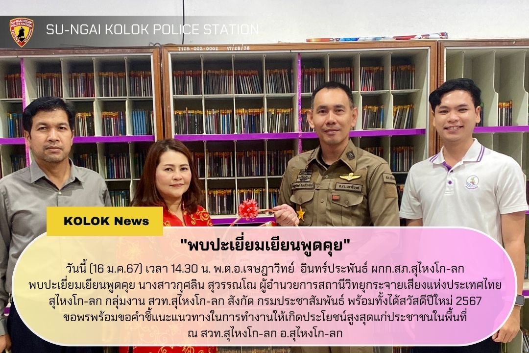 วันนี้ (16 ม.ค.67) เวลา 14.30 น. พ.ต.อ.เจษฎาวิทย์ อินทร์ประพันธ์ ผกก.สภ.สุไหงโก-ลกพบปะเยี่ยมเยียนพูด
