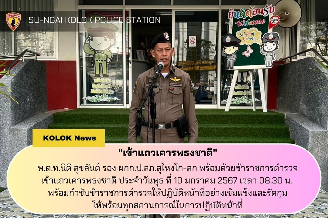 “เข้าแถวเคารพธงชาติ”พ.ต.ท.นิติ สุขสันต์ รอง ผกก.ป.สภ.สุไหงโก-ลก พร้อมด้วยข้าราชการตำรวจเ