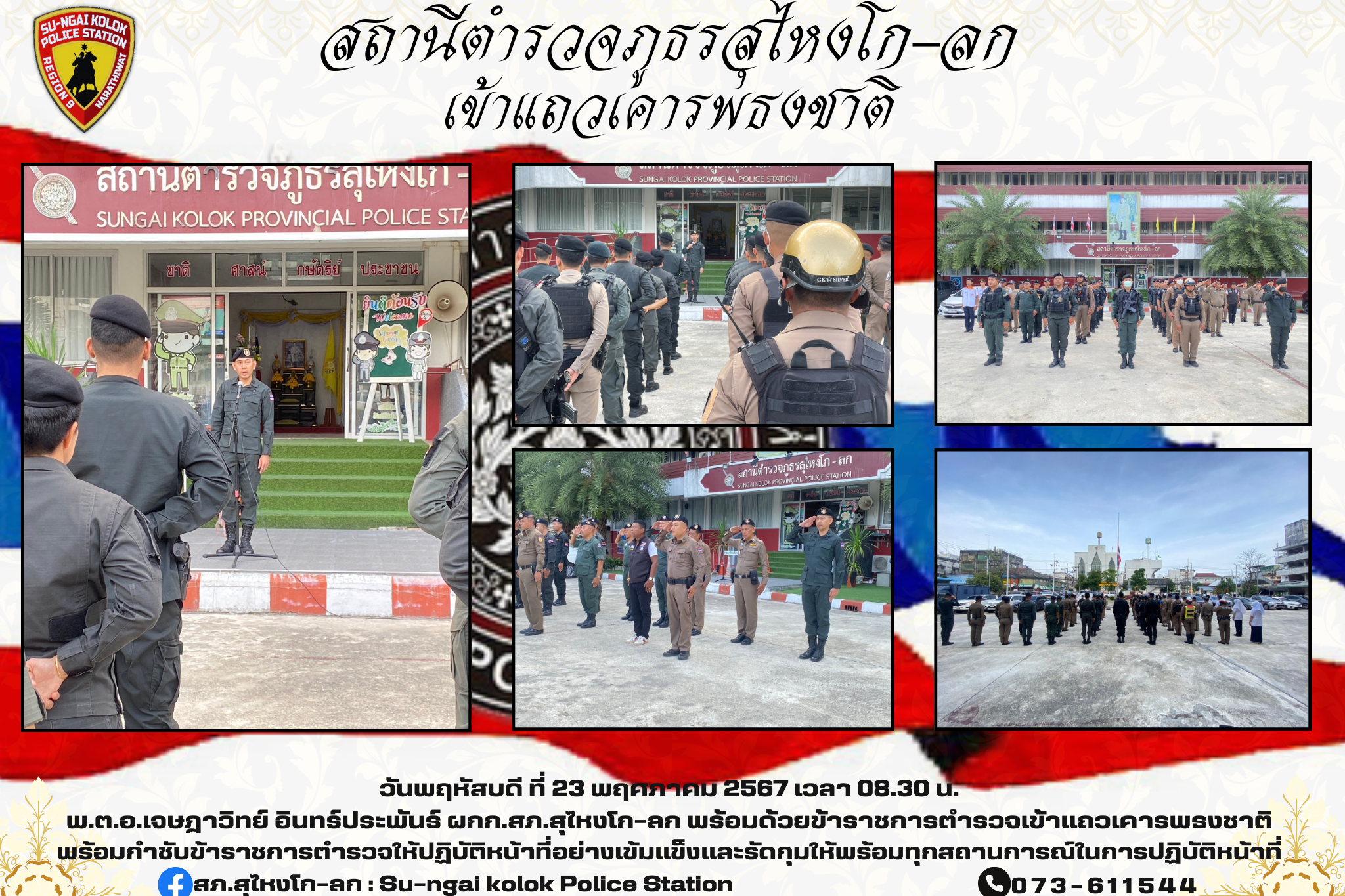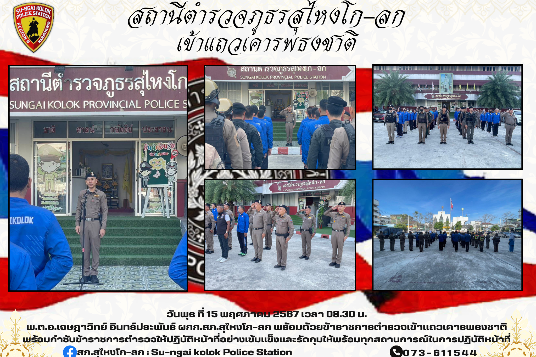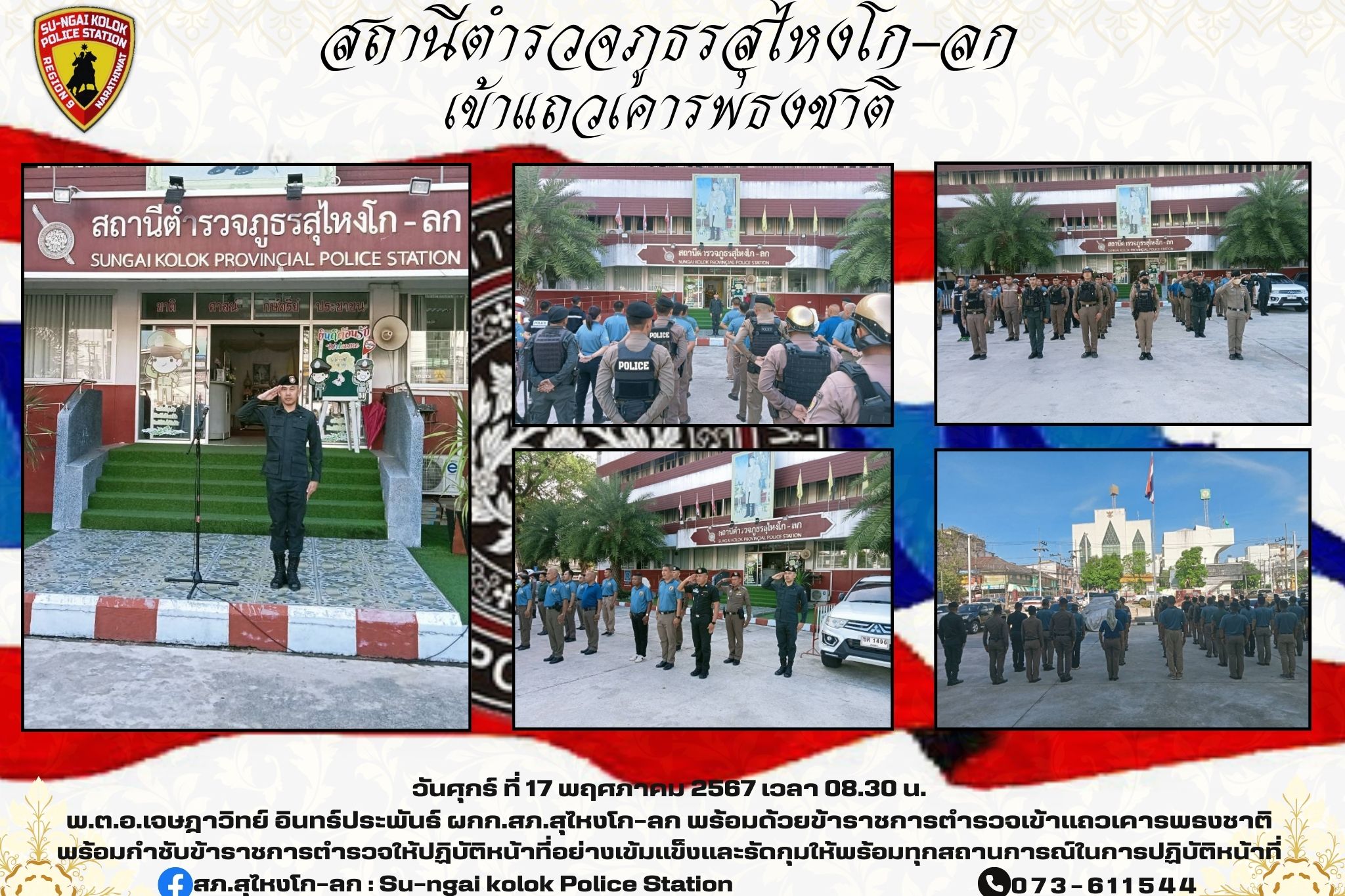 วันที่ 21 พฤษภาคม 2567 พ.ต.อ.เจษฎาวิทย์ อินทร์ประพันธ์ ผกก.สภ.สุไหงโก-ลก ร่วมเชิญแจกันดอกไม้พระราชทา