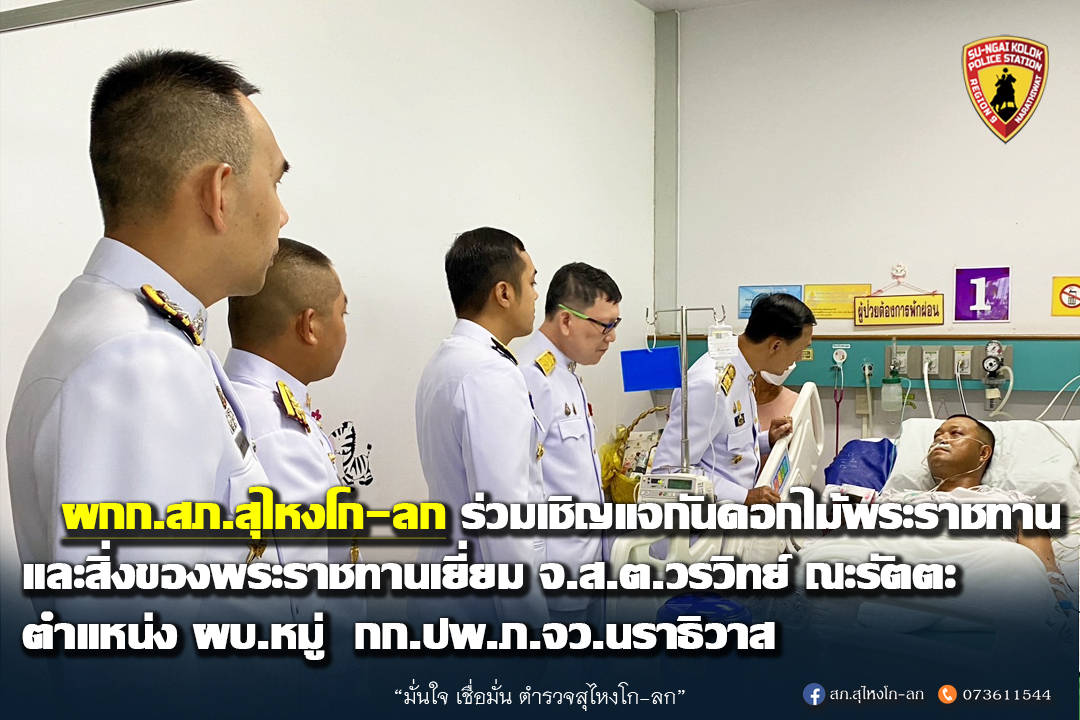 ผกก.สภ.สุไหงโก-ลก ร่วมเชิญแจกันดอกไม้พระราชทานและสิ่งของพระราชทานเยี่ยม จ.ส.ต.วรวิทย์ ณะรัตตะ ตำแหน่ง ผบ.หมู่ กก.ปพ.ภ.จว.นราธิวาส