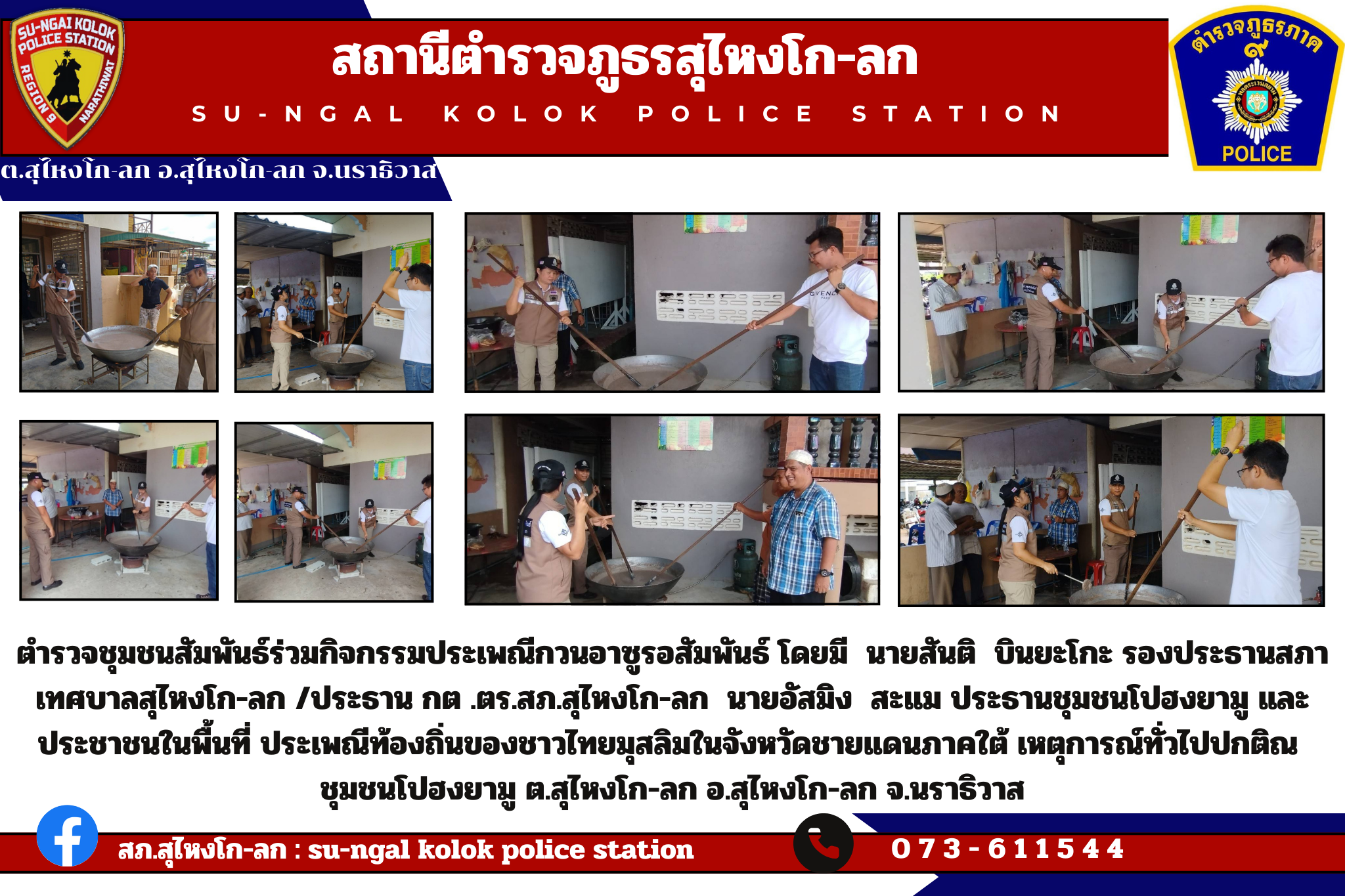 ภายใต้อำนวยการของพ.ต.อ.เจษฎาวิทย์ อินทร์ประพันธ์ผกก.สภ.สุไหงโก-ลกพ.ต.ท.นิติ สุขสันต์รอง ผกก.ป.สภ.สุไหงโก-ลกพ.ต.ต.วรธรรม รำสูงเนินสวป.(ชส.)สภ.สุไหงโก-ลกสั่งการให้-ด.ต.หญิงพิกุล เจ๊ะโดหน.ตชส.สภ.สุไหงโก-ลก-ด.ต.สุทัศน์ จันทร์พูล-ด.ต.ประจบ คงทอง-จ.ส.ต.กวินทัต กวินกิจ-ส.ต.อ.มูฮำหมัดฟิลฮัน ปะสูส.ต.ต.นัฐวัฒน์ วิวัชนะร่วมกิจกรรมโครงการเทศบาลพบปะประชาชนชุมชนเสาสัญญาณ ชุมชนทรายทอง ชุมชนดงงูเห่าและชุมชนหัวกุญแจ โดยมี นายสันติ บินยะโกะ รองประธานสภาเทศบาลสุไหงโก-ลก /ประธาน กต .ตร.สภ.สุไหงโก-ลก และหน่วยงานอิ่นๆ เหตุการณ์ทั่วไปปกติณ ลานปัญจักสีลัต ชุมชนหัวกุญแจ ต.สุไหงโก-ลก อ.สุไหงโก-ลก จ.นราธิวาส 24 กรกฎาคม 2567 โดย admin