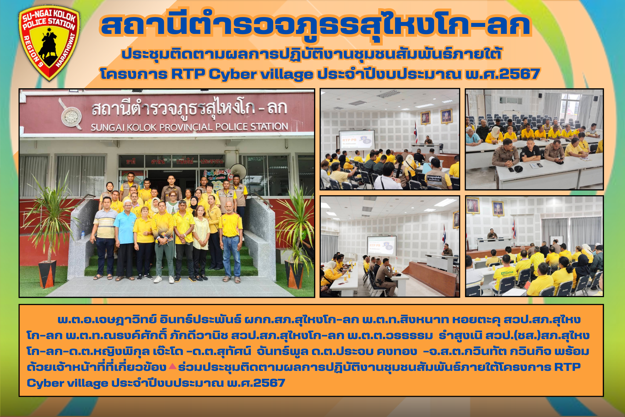 ร่วมประชุมติดตามผลการปฏิบัติงานชุมชนสัมพันธ์ภายใต้โครงการ RTP Cyber village ประจำปีงบประมาณ พ.ศ.2567 17 กรกฎาคม 2567 โดย admin