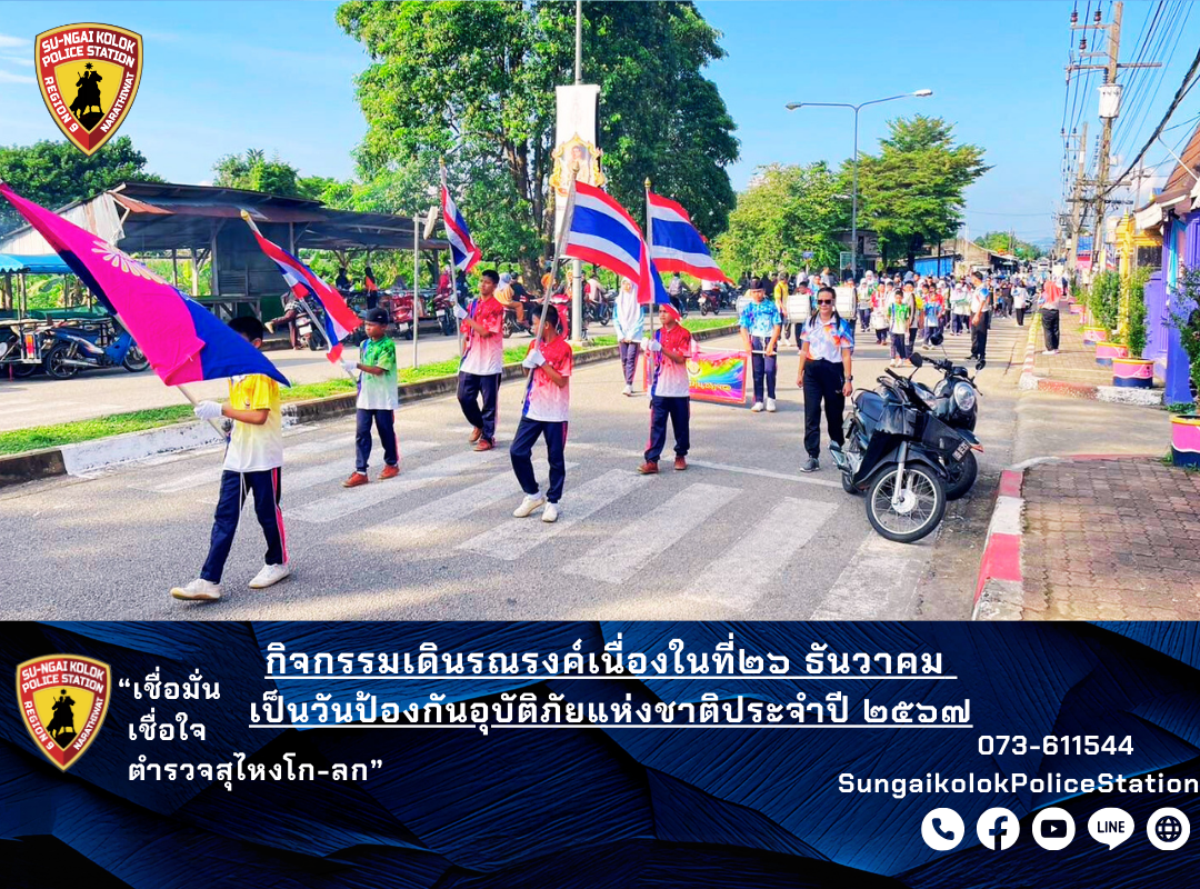วันที่ 26 ธ.ค. 2567 เวลา 08.00น. ภายใต้อำนวยการของพ.ต.อ.เจษฎาวิทย์ อินทร์ประพันธ์ ผกก.สภ.สุไหงโก-ลกพ