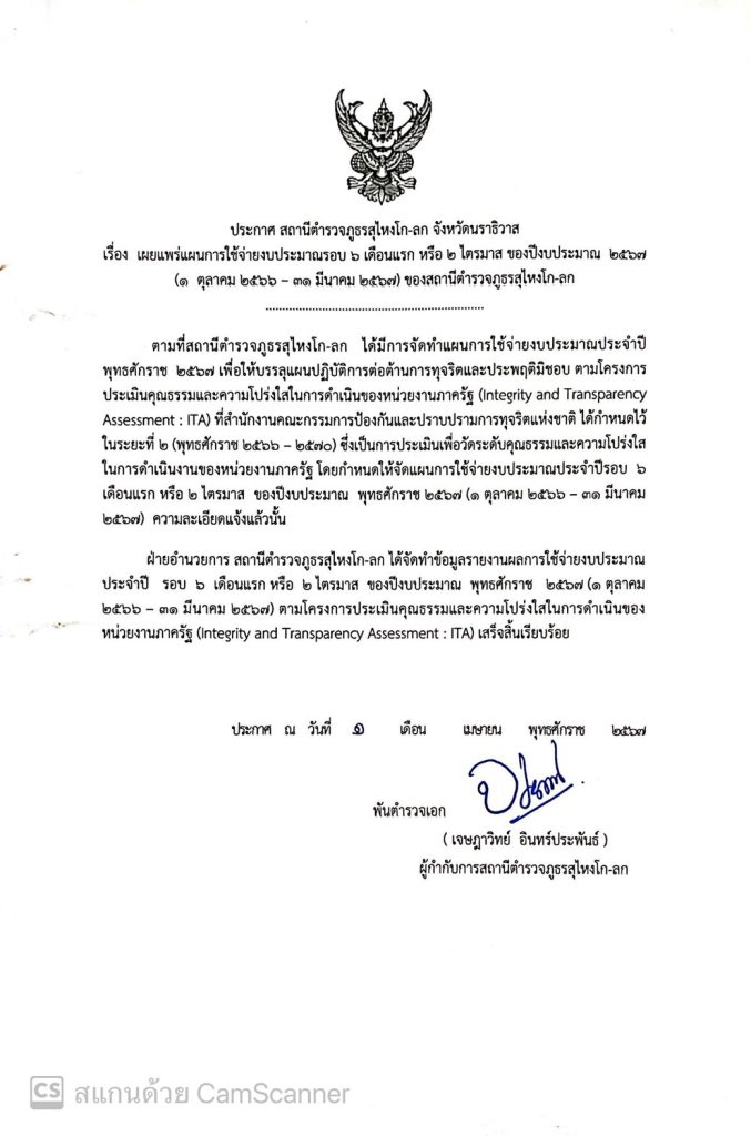 รายงานผลการใช้จ่ายงบประมาณของสถานีตำรวจ พ.ศ.2568