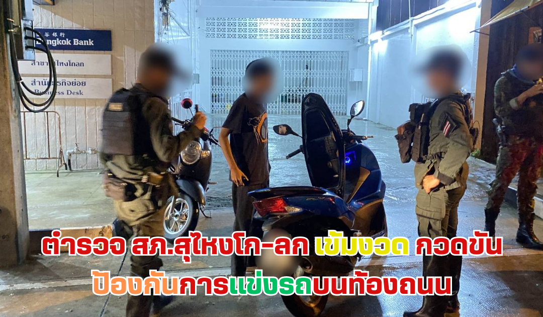 ตำรวจ สภ.สุไหงโก-ลก ปราบปรามการแข่งรถบนท้องถนน วันที่ 13 ธ.ค. 67ภายใต้การอำนวยการของพ.ต.อ.เจษฎาวิทย์ อินทร์ประพันธ์ ผกก.สภ.สุไหงโก-ลกพ.ต.ท.นิติ สุขสันต์ รอง ผกก.ป.สภ.สุไหงโก-ลกพ.ต.ท.กันตพล ทองนุ้ย สวป.สภ.สุไหงโก-ลกสั่งการให้ร.ต.อ.เสกสรรค์ ดือราแม (ร้อยเวร 20)-ว.4 ว.43 ตามมาตราการปราบปรามการแข่งรถบนท้องถนน และเพื่อป้องกันไม่ให้มีการรวมกลุ่มกันเพื่อกระทำการใด ๆ ที่ผิดกฎหมายในพื้นที่รับผิดชอบผลการปฏิบัติ ตรวจยึดรถจักรยานยนต์ จำนวน 1 คัน- ใช้รถที่มีส่วนควบหรืออุปกรณ์ไม่ครบถ้วนถูกต้อง- ใช้รถที่เปลี่ยนแปลงตัวรถหรือส่วนหนึ่งส่วนใดผิดไปจากรายการที่จดทะเบียน- ขับรถโดยไม่มีใบอนุญาตขับรถ- ไม่แสดงสำเนาภาพถ่ายใบคู่มือการจดทะเบียนรถ- ใช้รถที่ไม่ได้เสียภาษีประจำปีให้ครบถ้วนถูกต้อง-ลาดตระเวนจุดเสี่ยงที่อาจมีการวมกลุ่มแข่งรถ หรือก่อความเดือดร้อนรำคาญในพื้นที่