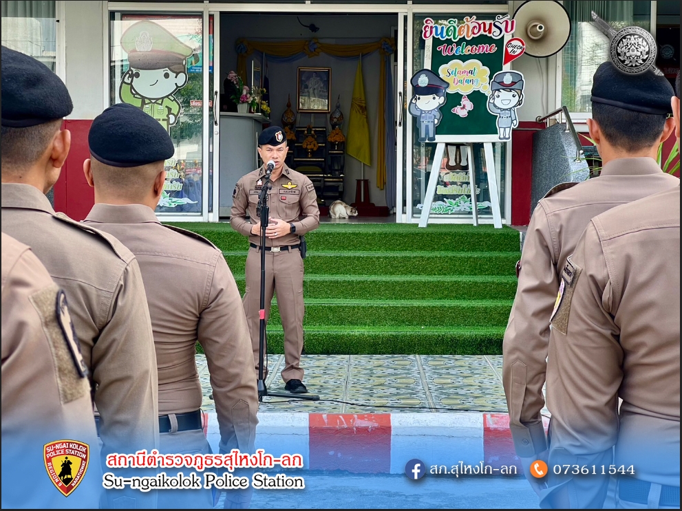 วันนี้ 01 พ.ย.2566 เวลา 08.30 น.พ.ต.อ.ปรัชญา ไบเตะ ผกก.สภ.สุไหงโก-ลกสั่งการให้พ.ต.ท.นิติ สุขสันต์ รอ