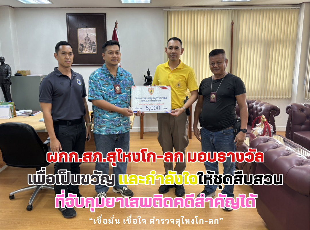 ผกก.สภ.สุไหงโก-ลก มอบรางวัล ชื่นชมตำรวจชุดสืบสวนที่สามารถตรวจค้นจนจับกุมยาเสพติดคดีรายสำคัญได้ เพื่อ