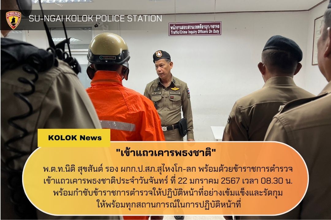 พ.ต.ท.นิติ สุขสันต์ รอง ผกก.ป.สภ.สุไหงโก-ลก พร้อมด้วยข้าราชการตำรวจเข้าแถวเคารพธงชาติประจำวันพุธ ที่