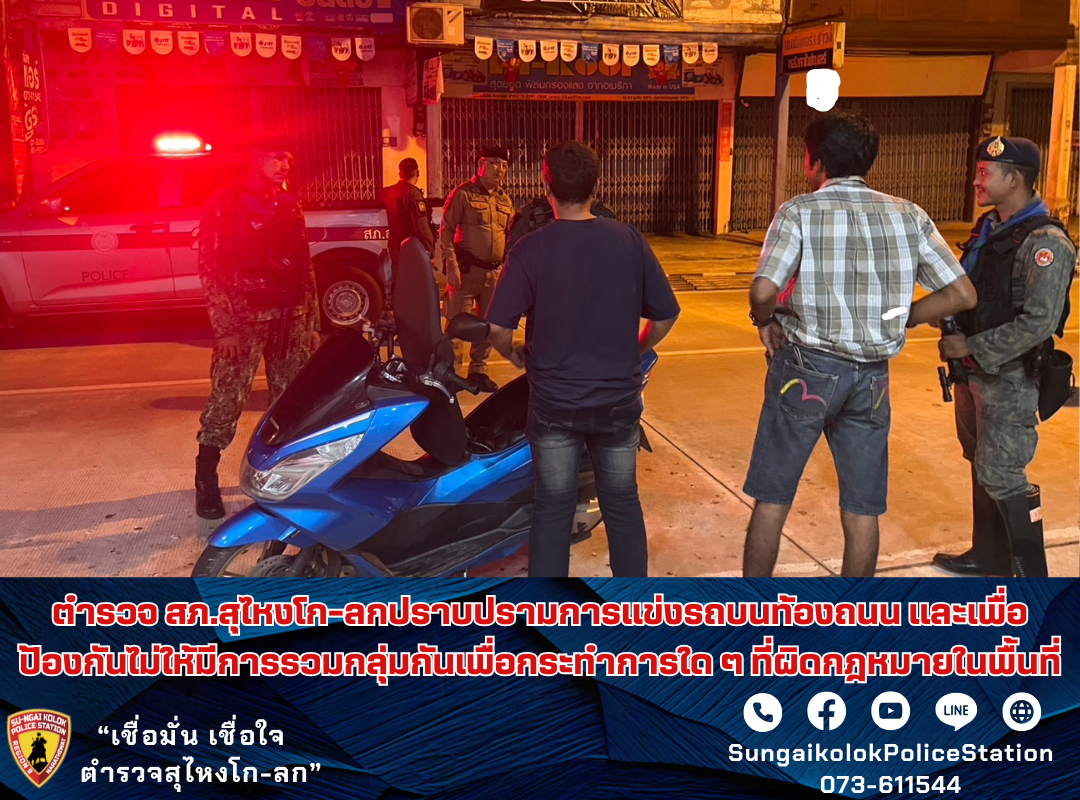 ปราบปรามรถไม่ติดแผ่นป้ายทะเบียน รถดัดแปลงสภาพ อุปกรณ์ส่วนควบไม่ครบ ไม่มีเอกสารคู่มือรถ ห้วงวันที่ 8-11 ม.ค. 2568ภายใต้อำนวยการของ พ.ต.อ.เจษฎาวิทย์ อินทร์ประพันธ์ผกก.สภ.สุไหงโก-ลก พ.ต.ท.นิติ สุขสันต์ รอง ผกก.ป.สภ.สุไหงโก-ลก พ.ต.ท.ณัฐชนน วรังอาสน์ สวป.สภ.สุไหงโก-ล ก ร.ต.อ.พงศ์ธร โกกะพันธุ์ รอง สวป.สภ.สุไหงโก-ลก