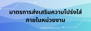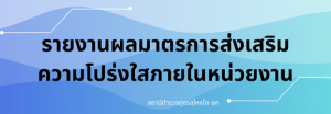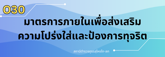 O30 มาตรการส่งเสริมคุณธรรมและความโปร่งใสภายในหน่วยงาน และการรายงานผลการดำเนินการตามมาตรการส่งเสริมคุณธรรมและความโปร่งใสภายในหน่วยงาน